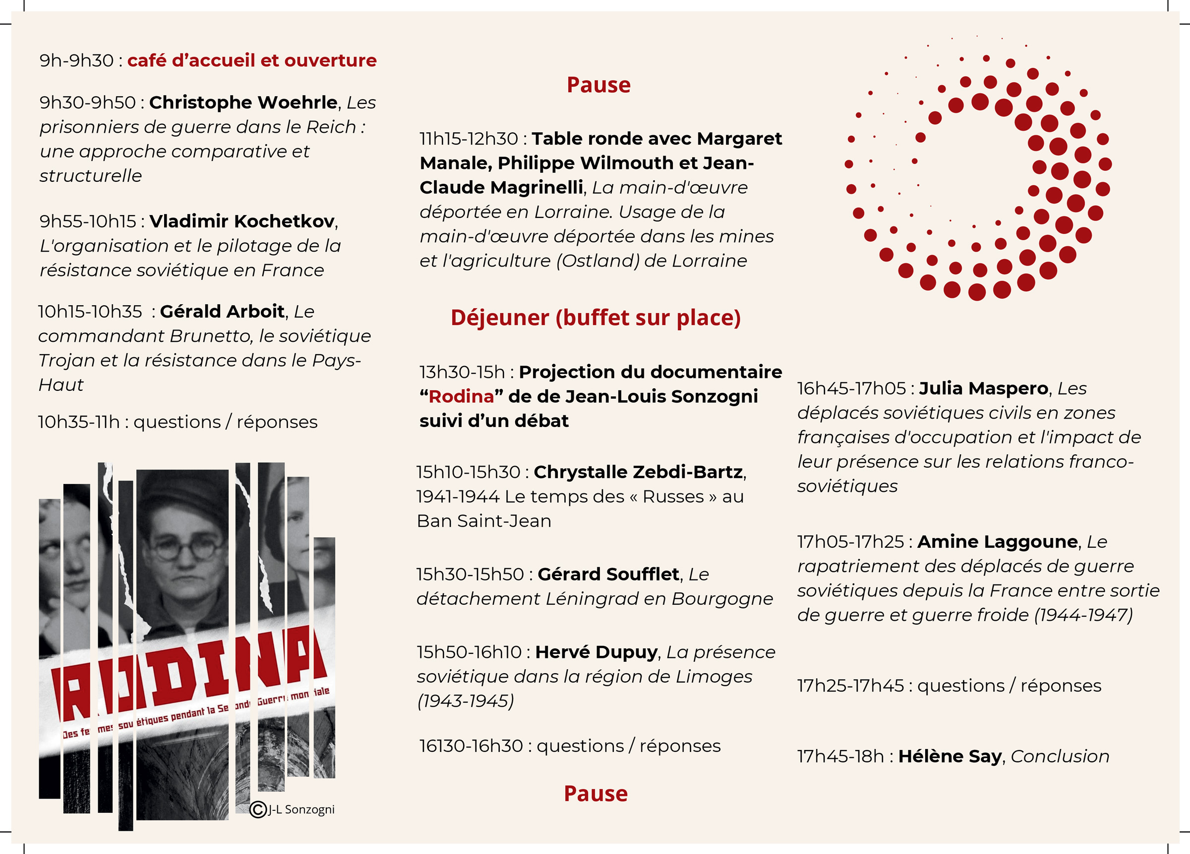 Le vendredi 4 avril 2025, s’est tenue la journée d’étude Prisonniers de guerre soviétiques en France (1941-1945) aux archives départementales de Meurthe-et-Moselle. Organisée par le Département de Meurthe-et-Moselle et le Centre régional et international de documentation et de recherche (association CRIDOR), cette journée a permis de tirer un premier bilan des recherches tant personnelles qu’associatives et universitaires menées en France ces dernières années et de dégager des pistes de recherches. Pendant l’Occupation, des travailleurs forcés ont été installés en nombre sur le territoire du département de Meurthe-et-Moselle, dont, à partir de 1941, un contingent très important de Soviétiques (russes, biélorusses, ukrainiens, baltes) : des prisonniers de guerre et des femmes résistantes déportés pour servir de main-d’œuvre dans les usines principalement sidérurgiques, l’exploitation des mines de fer et l’agriculture. Que sont-ils devenus ? Tués, évadés, résistants, rapatriés, naturalisés … Que savons-nous de ces hommes et de ces femmes passés par le nord et l’est de la France ? Quelle place occupent-ils dans la mémoire collective des territoires concernés ? Quelle est leur trajectoire qui les mène de l’est de l’Europe en France ? |