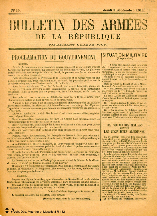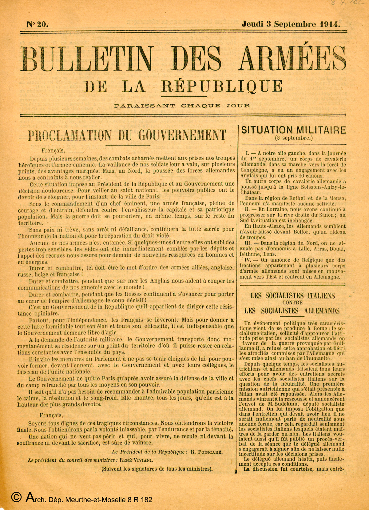 Bulletin des Armées n°20, 3 septembre 1914.