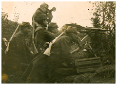Cette arme apparaît lors de la guerre de Sécession américaine (1861-1865) et, au début du premier conflit mondial, toutes les armées en sont équipées, quitte à en acheter à l'Allemagne (la Maxim MG utilisée par les Anglais et les Russes)…Comme sa rivale d'outre-Rhin, l'arme française (Hotchkiss modèle 14) souffre d'un poids considérable nécessitant sa manipulation par plusieurs servants. Responsable des hécatombes d'août-septembre 1914 lors des batailles des frontières et du Grand Couronné, la mitrailleuse symbolise à l'image du canon la priorité de la défense sur l'attaque. Elle contribue ainsi à la mutation de la guerre de mouvement en guerre des tranchées.