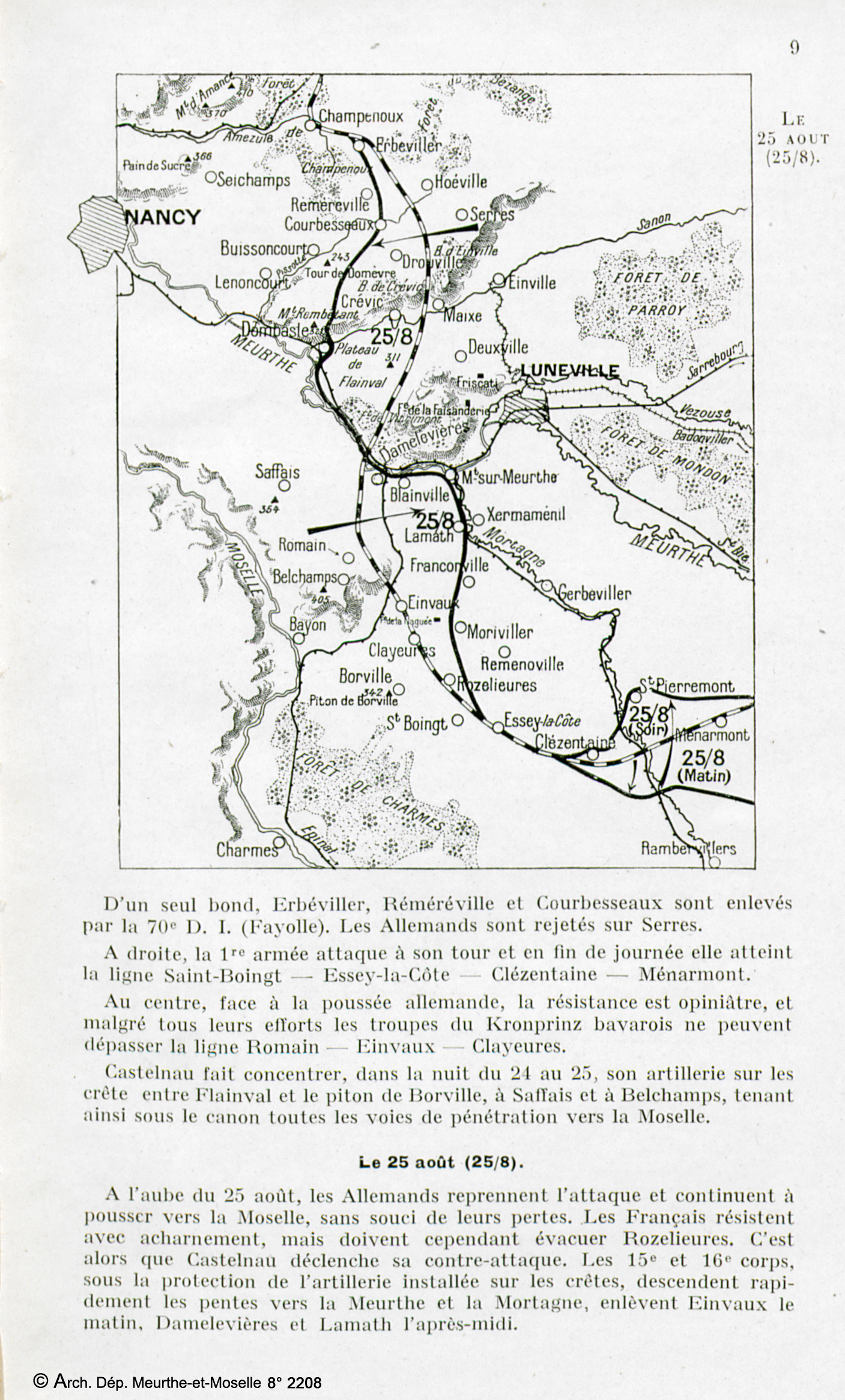 Carte du 25 août 1914 au deuxième jour de la bataille de la trouée de Charmes