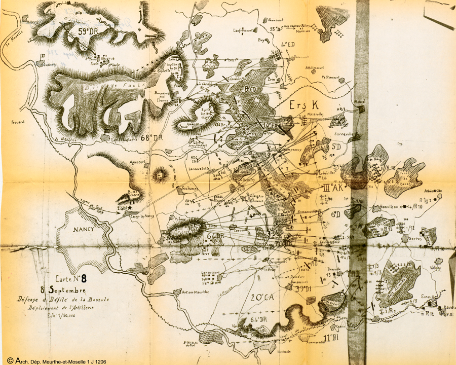 Carte n°8 - 8 septembre - Défense du défilé de la Bouzule, déploiement de l'artillerie