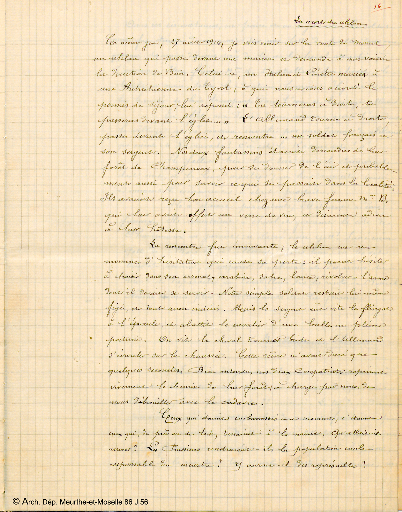 Dès le 18 septembre 1914, une circulaire du ministère de l'Instruction publique demande à tous les instituteurs en fonction de rédiger une chronique des événements destinée à connaître, d’une part les réactions des habitants au moment de la mobilisation, et d’autre part, pour les communes situées sur le front ou à proximité de celui-ci, pouvant servir à écrire l'histoire de la guerre et des opérations militaires. La qualité des intéressés et leur formation font de ces écrits une source exceptionnelle. La durée du conflit et la permanence du danger mettront cependant fin à cette initiative mémorielle.