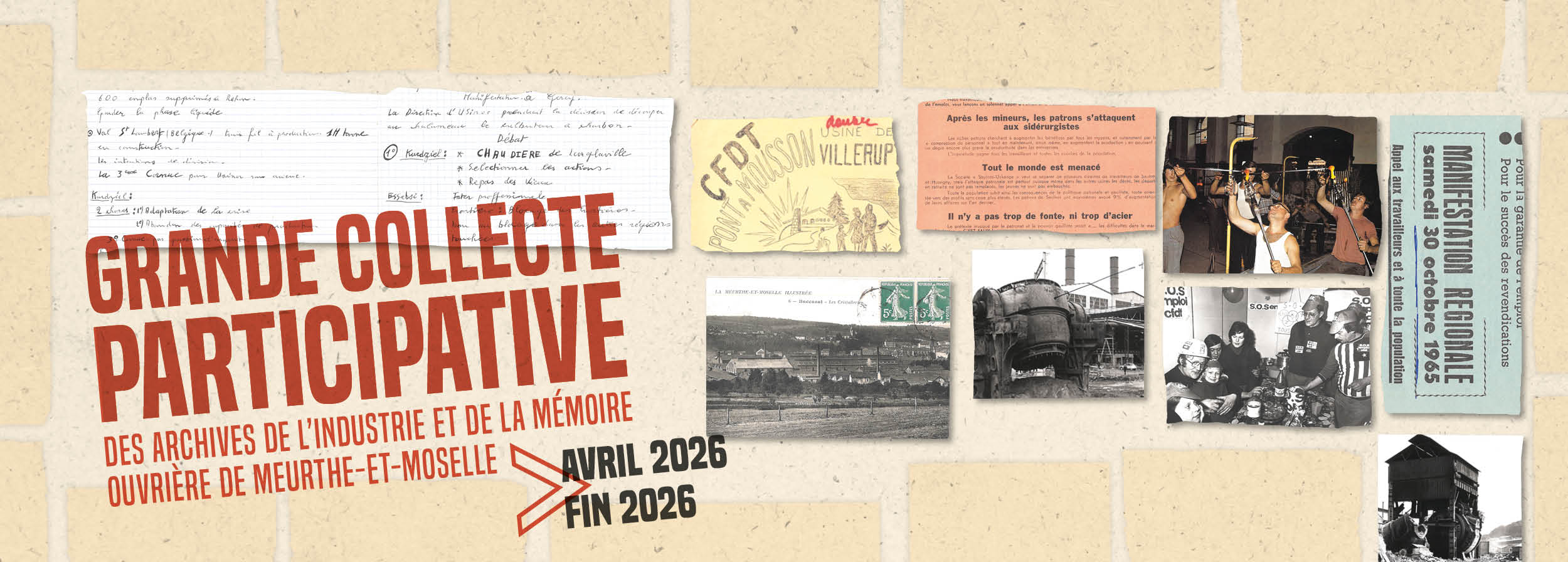 Afin d’identifier, sauvegarder, conserver et valoriser ce patrimoine, le Conseil départemental de Meutrthe-et-Moselle, en partenariat avec un réseau d’acteurs locaux (historiens, associations, municipalités, intercommunalités), lance un grand projet de collecte d’archives consacrées au monde industriel et ouvrier.