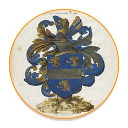D’azur à deux lions d’or, armés et lampassés de gueules, affrontés de part et d’autre d’un arbre posé sur une terrasse d’or